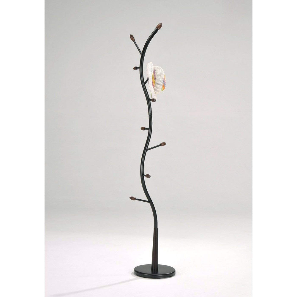 This Black Metal Hall Tree Coat Rack is a stylish and functional addition to any entryway. Featuring a sleek black and walnut finish, it provides convenient storage for coats, hats, and accessories. Compact and lightweight at just 13 lbs, it fits in small spaces while offering sturdy support. Easy to assemble, this hall tree combines modern design with practicality, helping keep your home organized and clutter-free.