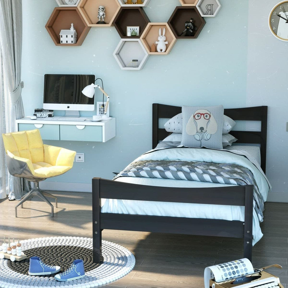 Fast Furnishings Twin Size Farmhouse Style Pine Wood Platform Bed Frame in Espresso
