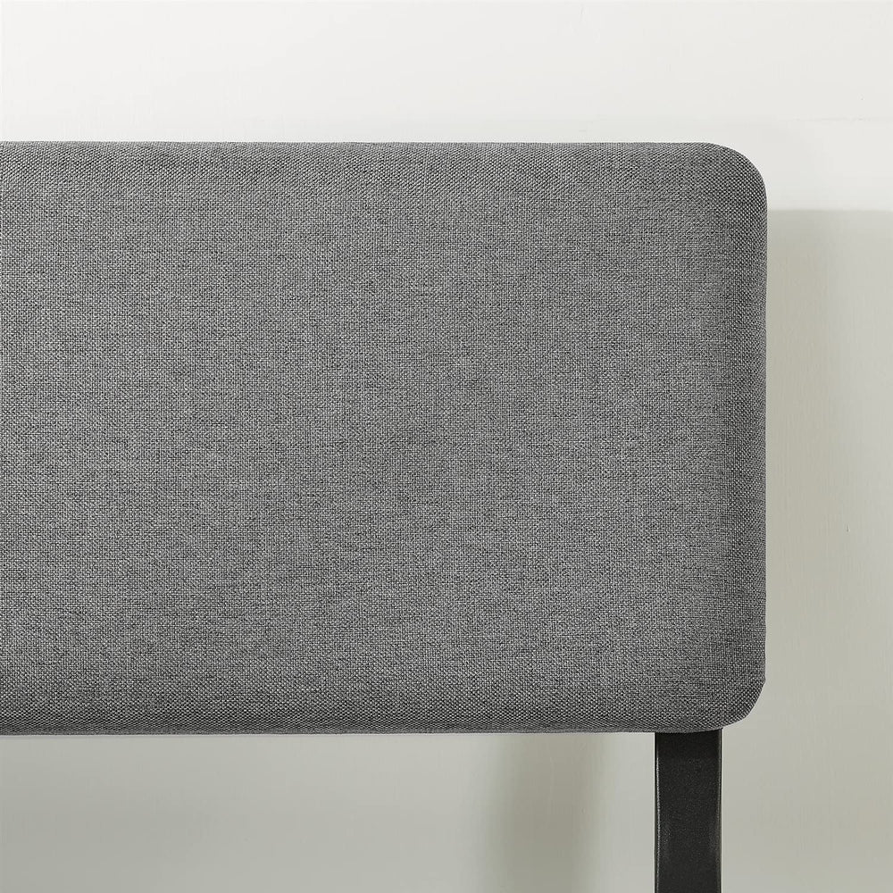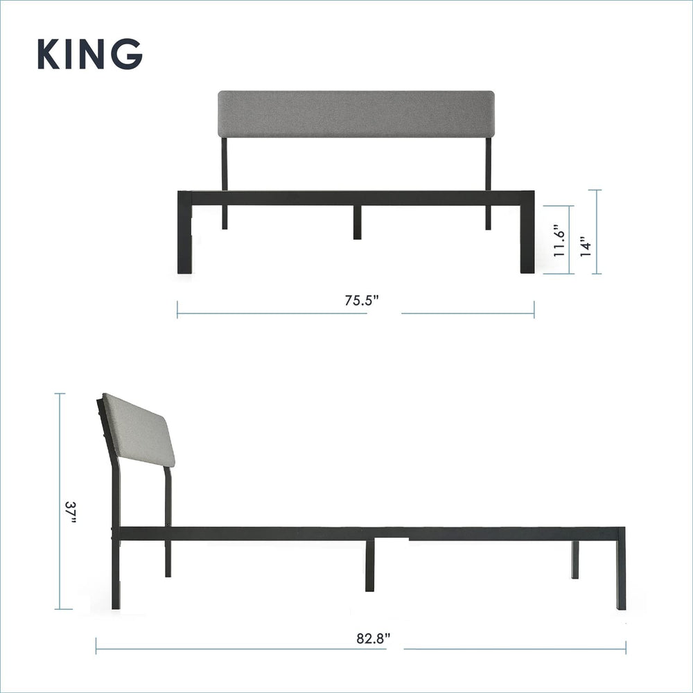 Fast Furnishings King Size Grey Soft Fabric Metal Headboard Platform Bed Wooden Slats
