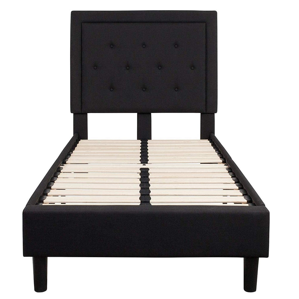 Fast Furnishings Twin Black Fabric Upholstered Platform Bed Frame with Tufted Headboard