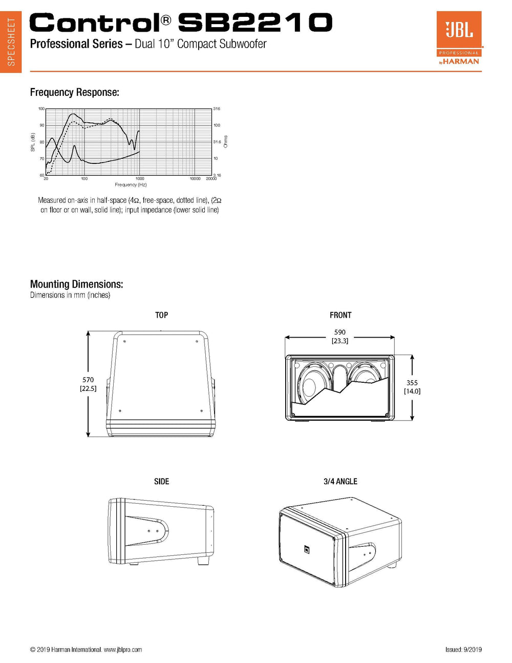 The CONTROL SB2210 provides low frequency reinforcement for a wide variety of sound system applications. Its compact size, high output and outdoor Capable design makes it one of the most versatile subwoofers in the installation market.