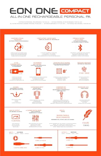 Product Description Experience powerful audio on the go with the JBL EON ONE Compact, a versatile portable PA system that combines professional sound performance, a fully-featured 4-channel mixer, and Bluetooth control??ll in one compact, battery-powered unit. Weighing just 17 pounds, it?? the ultimate portable PA system for musicians, fitness instructors, DJs, and presenters who need to sound their best anywhere. Customize your audio settings via the JBL Compact Connect app, where you can tweak Lexicon and dbx-inspired effects and presets to suit your needs. Maximize convenience and performance with the EON ONE Compact?? ducking feature, which automatically lowers background music when speech is detected, ensuring clear and professional communication at all times. This portable PA system also offers peer-to-peer Bluetooth, enabling you to broadcast on up to four speakers from a single device, perfect for larger spaces or events. The swappable, tool-free, 12-hour battery allows you to keep the party going well into the night, providing uninterrupted entertainment or announcements. Designed with the performer in mind, the JBL EON ONE Compact is more than just a PA speaker??t?? an all-inclusive sound system that lets you #PlayAnywhere. Whether you're performing on stage, busking on a corner, leading a fitness class, hosting an event, delivering a sermon, or simply enjoying high-quality audio on the go, this portable PA system delivers unparalleled sound precision and versatility. Get ready to elevate your audio experience with the JBL EON ONE Compact. From the Manufacturer Presenters, fitness instructors and emcees will appreciate the one-touch ducking feature, which drops background music volume any time you speak so your audience hears every last word, loud and clear. DJs: with a 12-hour, tool-less swappable battery, you??l keep the music going long after the sun goes down. Whether you??e at the beach or on the block, enjoy the freedom to #playanywhere with JBL EON ONE Compact.