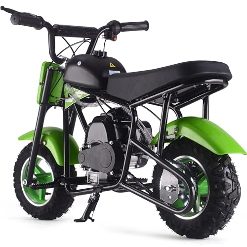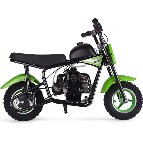 Experience the thrill of classic mini bike riding with this compact powerhouse. Featuring a robust 49cc 2-stroke air-cooled engine paired with an automatic clutch system, this mini bike delivers smooth, user-friendly operation - perfect for beginners. The simple twist-and-go throttle control makes riding intuitive and fun. Built tough with a sturdy steel frame and equipped with beefy 11-inch air-filled knobby tires, this bike is ready to tackle various terrains from backyard trails to dirt paths. The sleek black finish gives it a classic, timeless look, while the comfortable padded seat and ergonomic handlebar design ensure an enjoyable riding experience. The compact size makes it easy to transport and store, while still providing enough power for exciting outdoor adventures. Whether you're introducing someone to motorized recreation or seeking nostalgic thrills, this mini bike delivers reliable performance and endless entertainment.